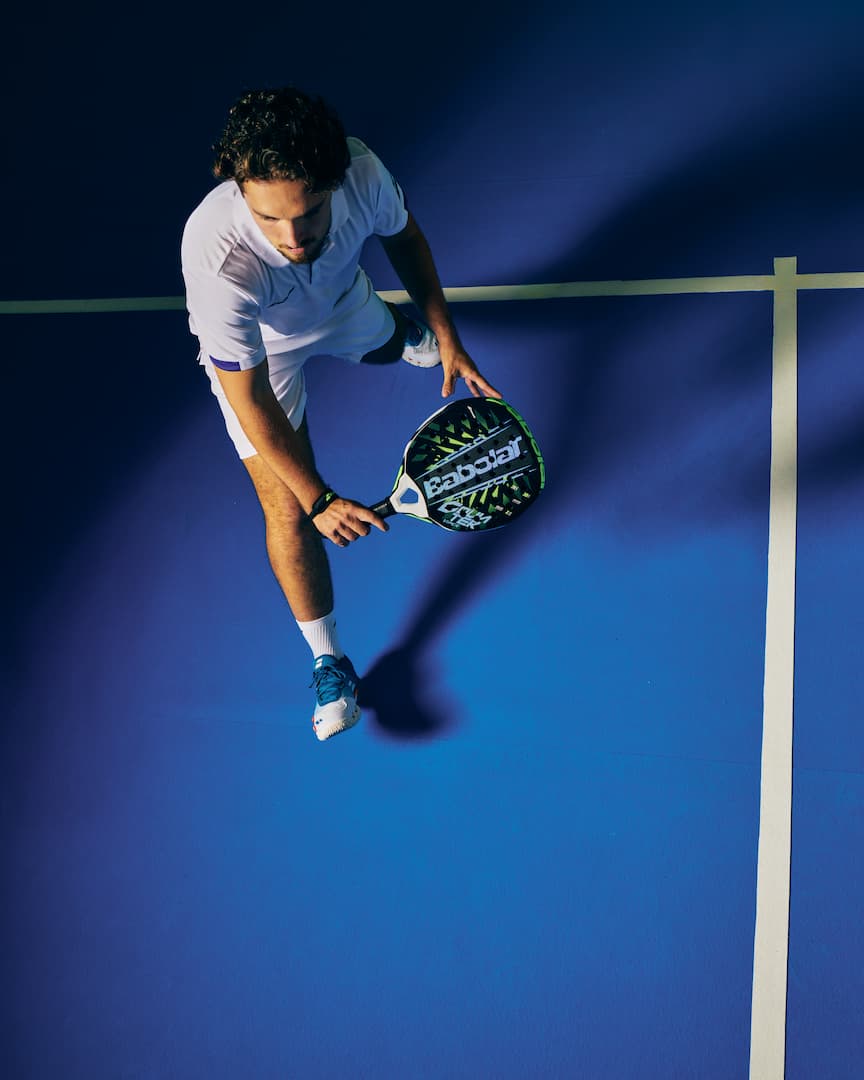 The X-EVA sandwich core, made of three EVA layers, adapts to different game situations. Firmer outer layers deliver controlled power when accelerating through the ball, while the softer inner layer increases comfort and forgiveness during defensive play and extended rallies.